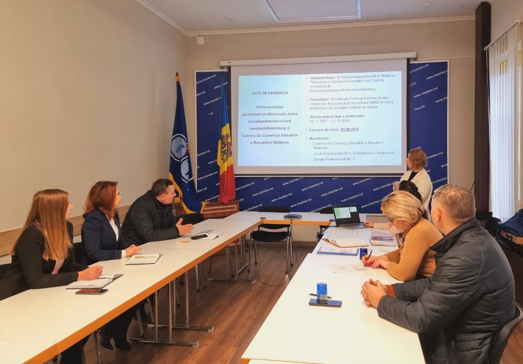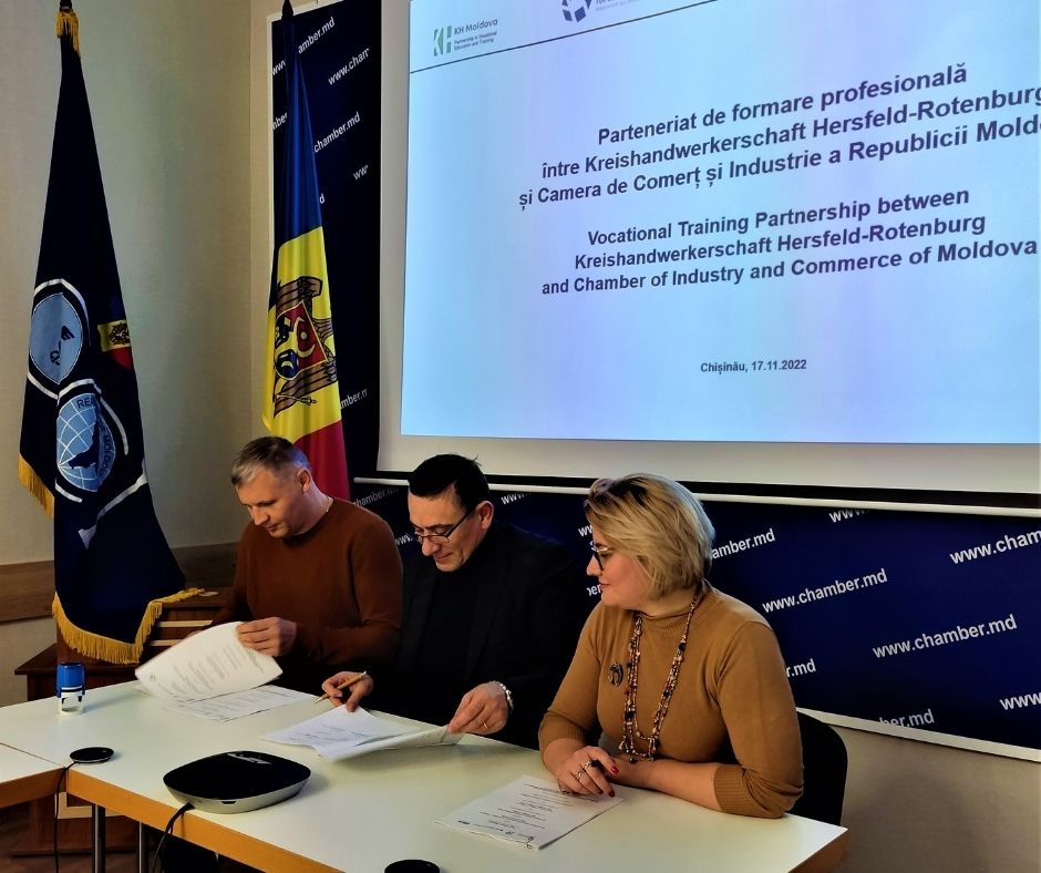 16 noiembrie 22 au fost semnate Acordurile de implementare cu Centrul de Excelență în Energetică și Electronică și Școala Profesională nr.7, mun. Chișinău – instituții partenere în cadrul Parteneriatul de formare profesională între Kreishandwerkerschaft Hersfeld-Rotenburg și Camera de Comerț și Industrie a Republicii Moldova.