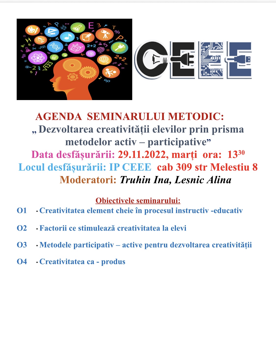 Deoarece în carul I.P. CEEE, începând cu anul de studii 2018, s-a implementat forma de învățământ DUAL la două programe de formare profesională nivelul IV: Rețele electrice și Telecomunicații, astăzi s-au discutat avantajele, prioritățile și impedimentele întâlnite pe parcursul dezvoltării formei de învățământ. Formarea consorțiilor între mai mulți agenți economici și instituțiile de învățământ.